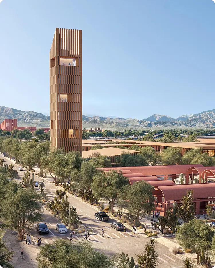 A next-generation district integrating industrial, residential, commercial and preserved natural areas in Mexicali.